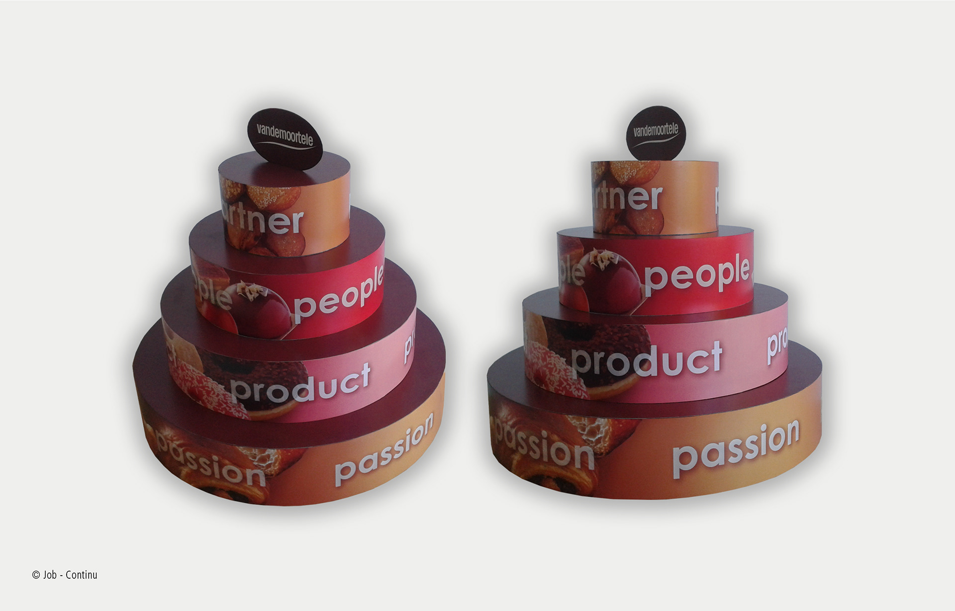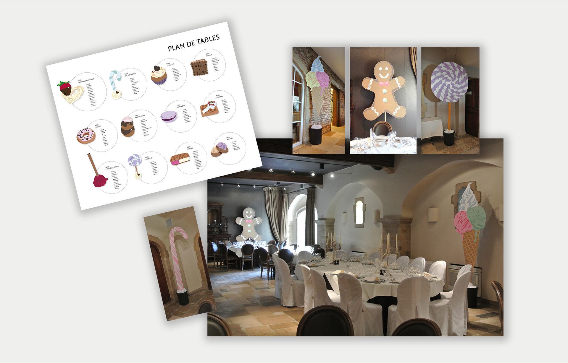 3D I Panneaux grand format et illustrations sur le thème de la gourmandise pour un mariage I Présentation des produits pour Vandemoortele en 3D