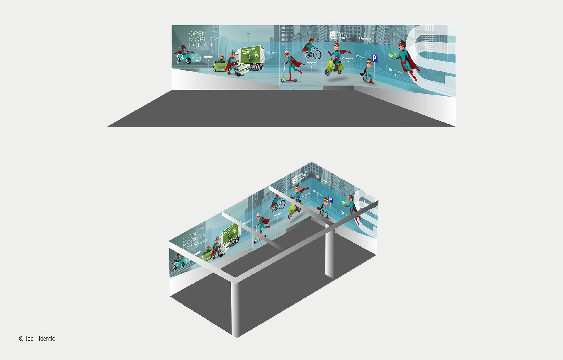 EUROPCAR I Création de visuels pour des box d'exposition de voiture dans les aéroports belges